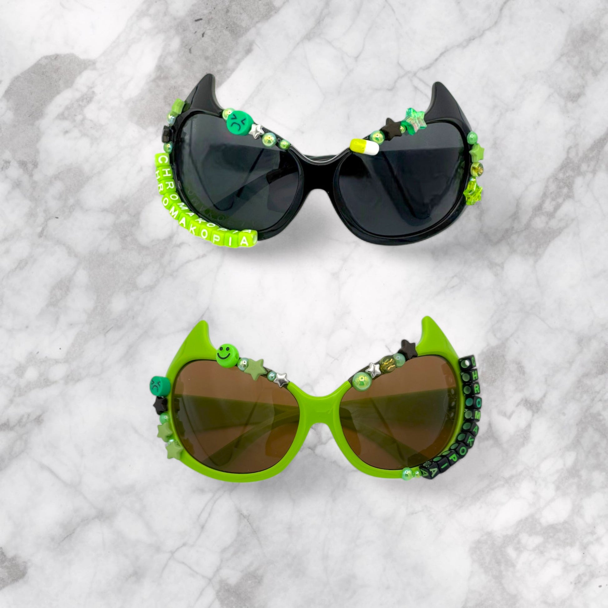 Straight from the dreamscape of drip, the Chromakopia Devil Horned Sunnies are your all-access pass to Tyler the Creator energy. Designed for fans who live loud, these oversized wraparound frames feature mini devil horns and come in black or neon green—because subtlety was never the assignment.